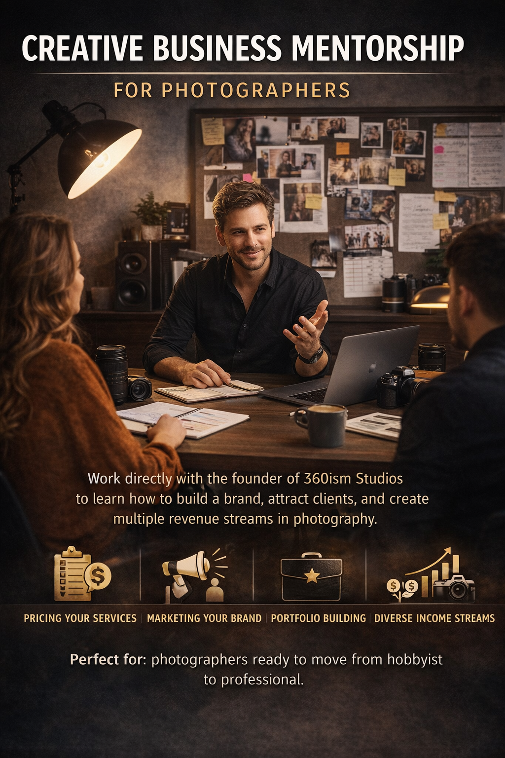 6-Week Program | $3K–$5K Work directly with Daring Leaderman to build your brand, pricing, services, and photography business model. Best for: photographers ready to professionalize and scale.