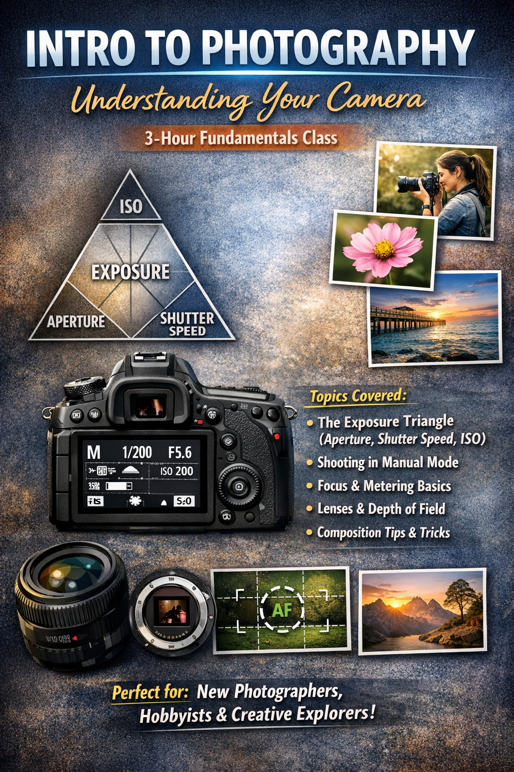 Hands-On Practice. You’ll actively shoot and adjust settings throughout the class so the concepts stick immediately.